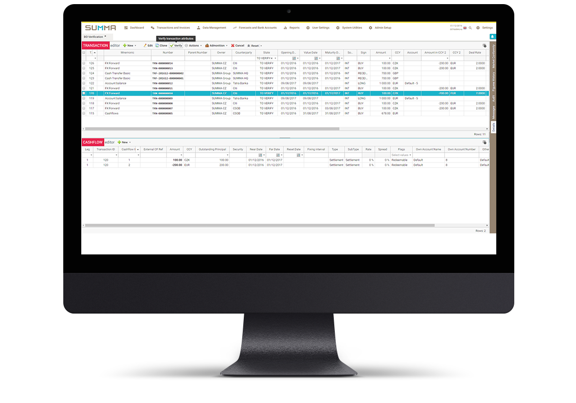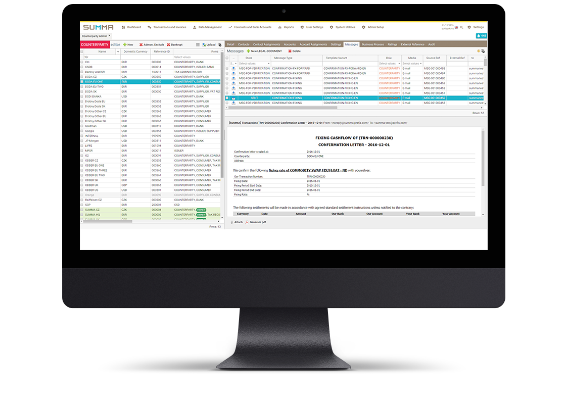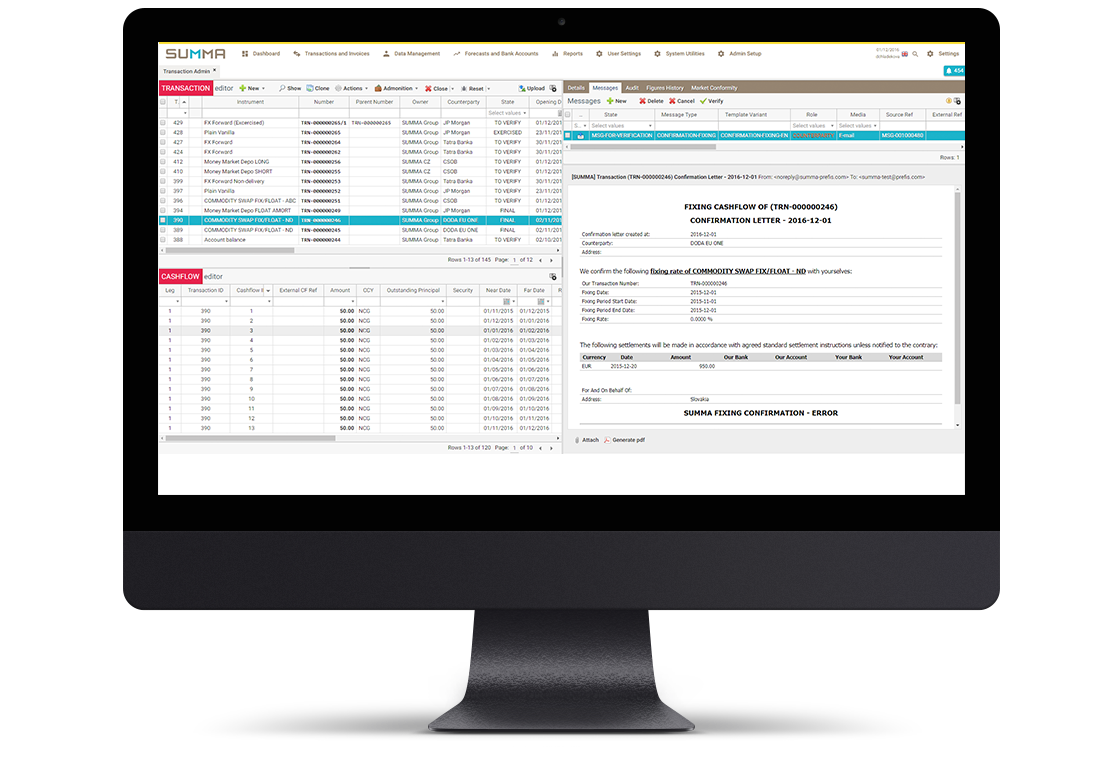 SUMMA provides a comprehensive system for management of the entire transaction lifecycle. From deal entry to settlements, valuations, reporting and accounting outputs, SUMMA fully integrates the process of managing transaction flow in a robust and detailed way.