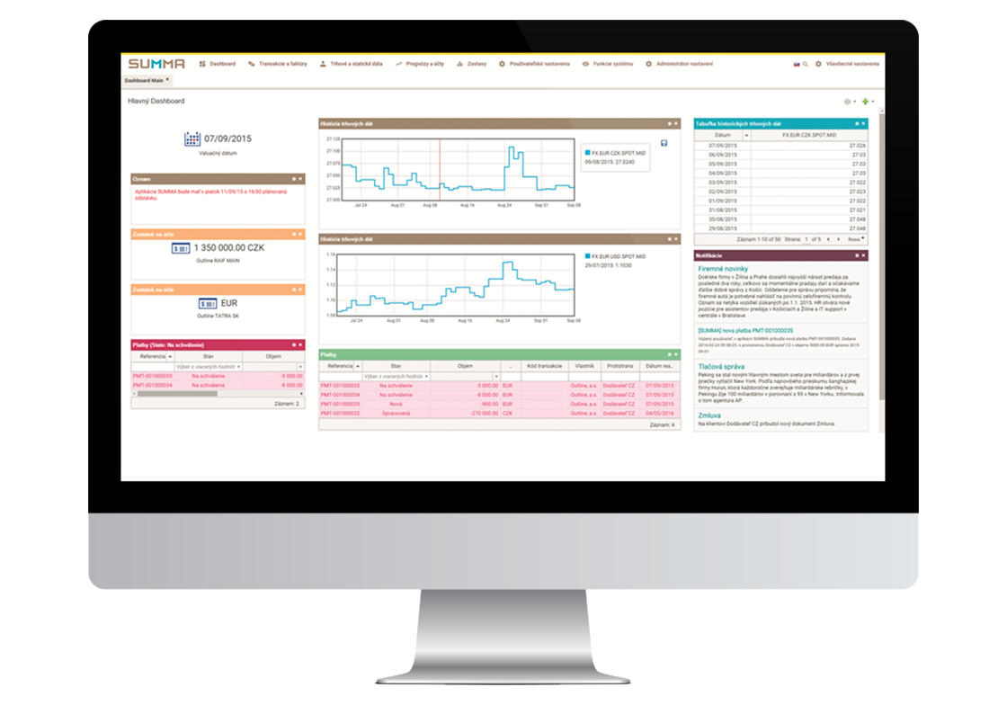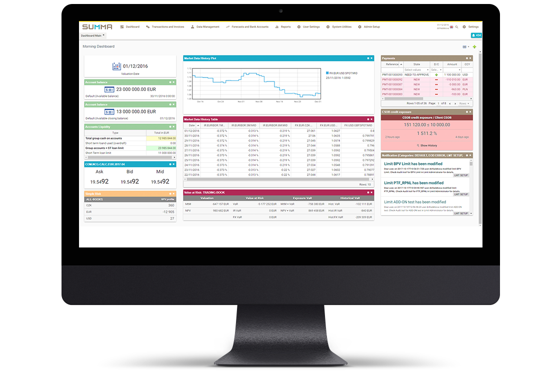 SUMMA Treasury & Risk management system combines integrated front, middle and back office functionality with a unique workflow model, enabling user-configurable control throughout the lifecycle of any transaction. This provides banks and financial institutions with the control and automation required for efficient, streamlined operations.